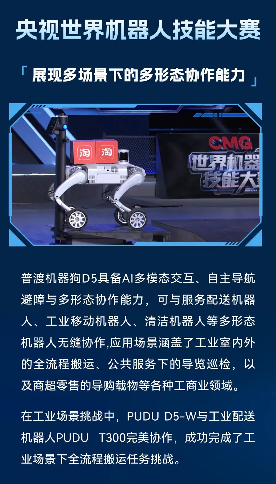 一脑多形,服务无界:普渡机器狗D5-W央视世界机器人技能大赛首秀“出道”