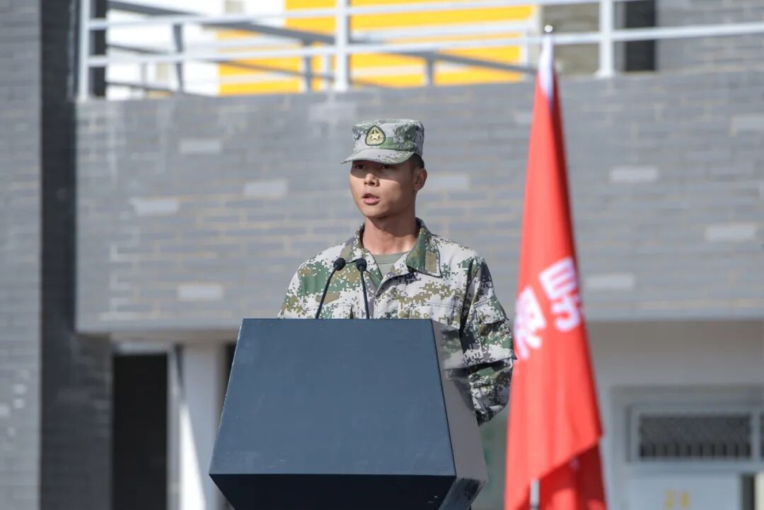 承训单位教官代表贺兴义在发言中表示,学生军训是增强国防意识与爱国精神的重要途径,也是培养遵章守纪、吃苦耐劳、团结协作、顽强拼搏品质的实际举措。希望同学们在军训中端正思想、认真对待,认清军训意义,以高标准严要求规范自己,加强组织纪律性,发扬“不怕苦、不怕累”精神,服从管理、刻苦训练,团结协作、努力拼搏,圆满完成军训任务。