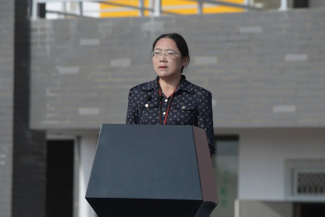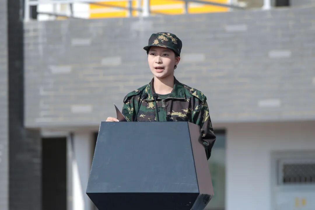 文学院新生代表张可懿垚同学在发言中表示,她将在军训中以高标准严格要求自己,锤炼体魄、磨砺意志,与同学们互帮互助,共同进步。她承诺将把军训中培养的好作风、好习惯延续到今后的学习与生活中,用汗水书写无悔青春。