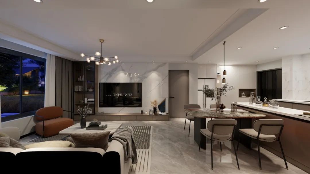 客餐厨一体设计,打破传统空间分隔,在视觉上更加开阔,同时,提高空间利用率,增强家庭成员间的互动。