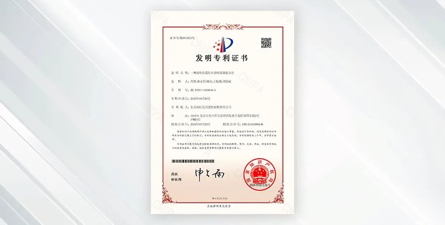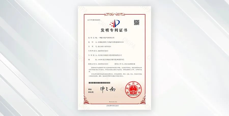 2024年,AWR101沥青防水涂料荣获中国发明专利证书(专利号:ZL202310268546.4)。