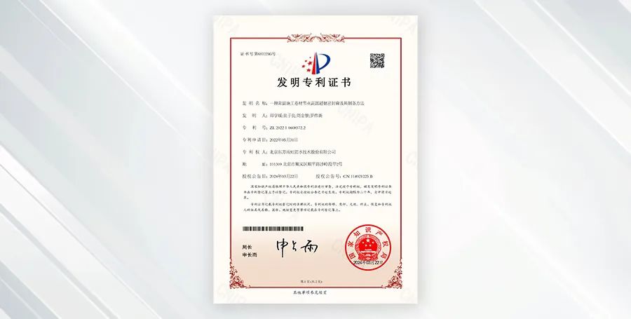 2024年2月,雨虹“轻质回填王”荣获中国发明专利证书(专利号:ZL202211482190.6)。