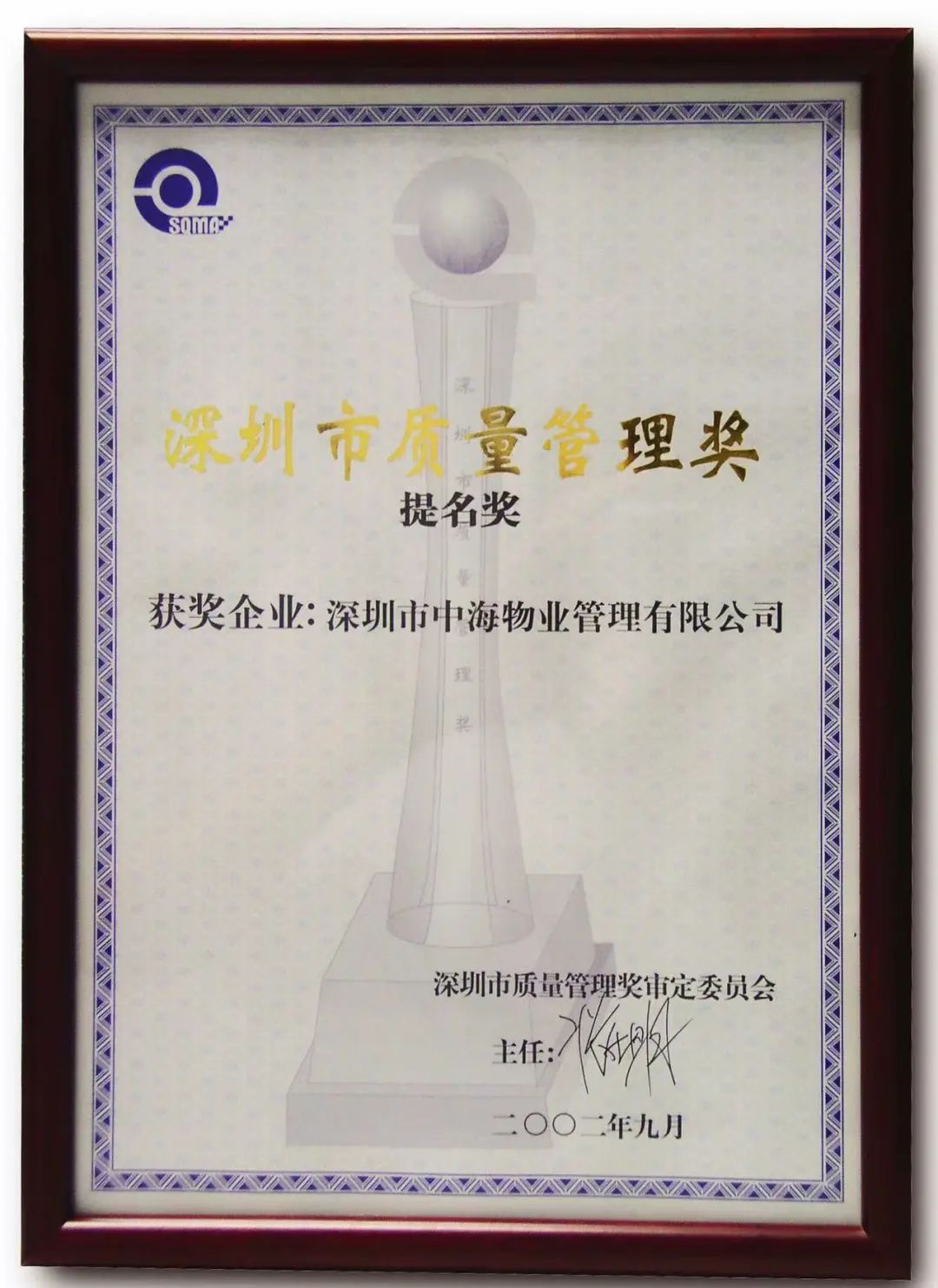 当深圳全力铸造“质量之城”,2002年首届“深圳市质量管理奖”的殊荣,是中海物业收获的最初肯定。