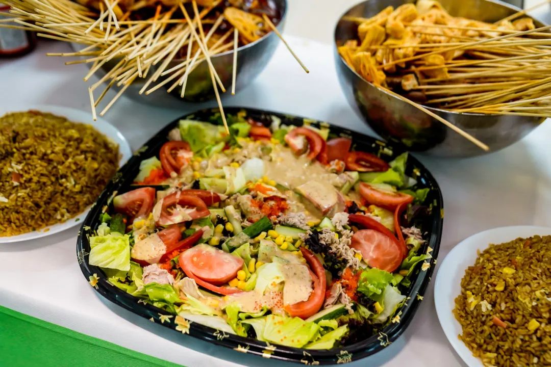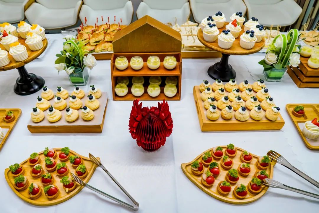 寿司、串串、沙拉、水果、甜品……丰富的菜肴令人胃口大开。用美食装满餐盘,我们坐在一起,一边享受美味,一边开启了畅聊模式。我们是工作上的好伙伴,更是生活中的好朋友。