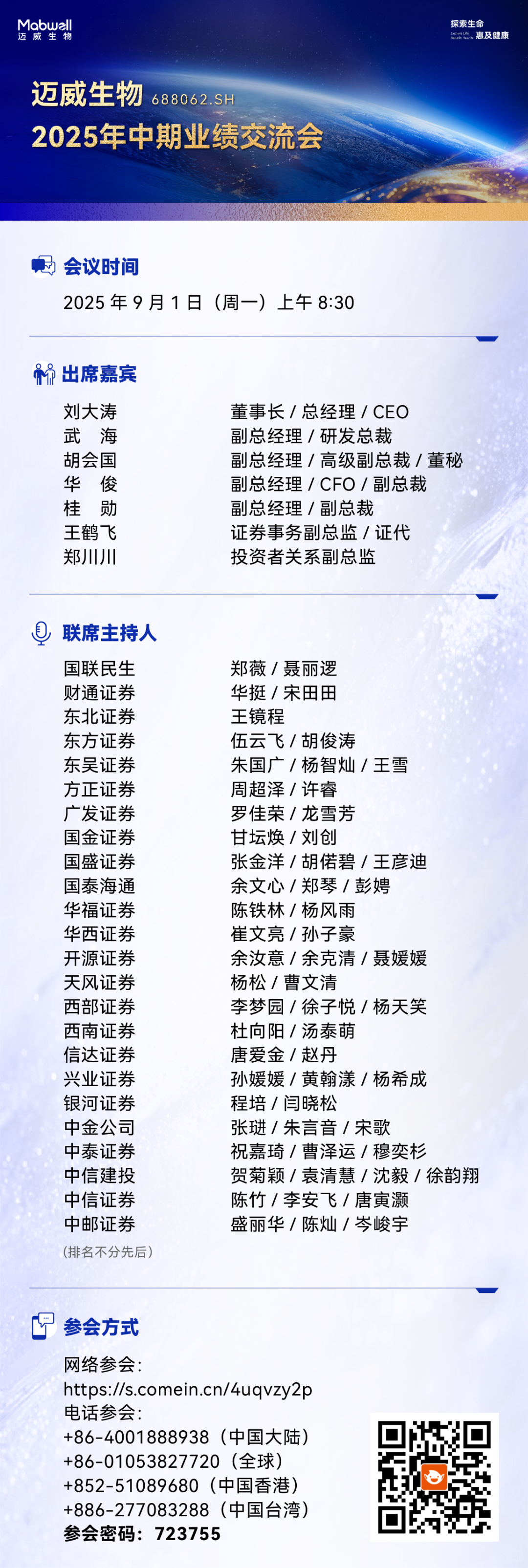 邀请函 | 迈威生物 2025 年中期业绩交流会