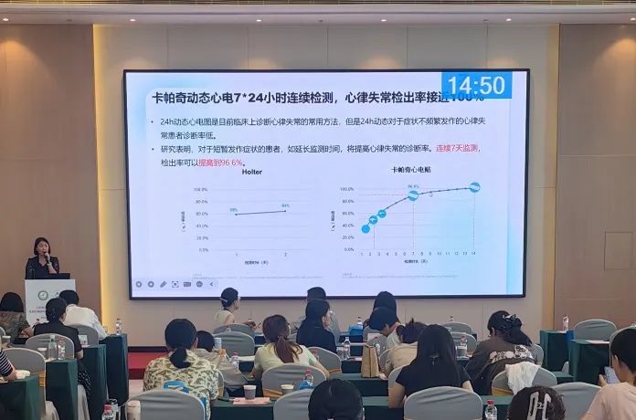 孟总监在本次报告中重点探讨了临床心律失常检出的相关问题,通过援引研究数据得出,传统的24小时动态心电图对于症状偶发或不频繁的患者存在诊断局限。而将心电监测时间延长至连续7天,可显著将心律失常的检出率提升至96.6%。这充分点明了长程动态心电监测在临床实践中的关键价值和迫切需求。