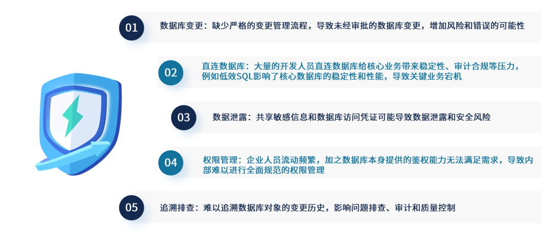 另一方面,在操作行为监控、账号密码管理以及操作行为审计等关键环节,仍缺乏有效的管理手段。更关键的是,前期在数据库管理过程中,强化安全管控往往会降低工作效率,而放任操作自由又会使安全风险大幅增加,使得数据库安全管理难以在安全与效率之间找到平衡。