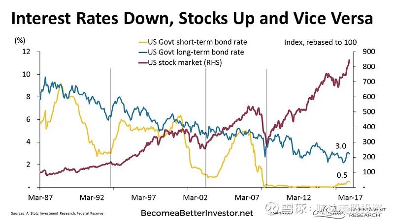 长期来看利率与股市的负相关关系,是可以基本成立的。但要注意,这是一个长期来看普遍成立但短期内又非常不绝对的规律,并不是如同爱因斯坦相对论一般精密的物理规律。
