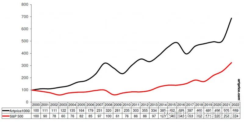 另外如果把久期思维极端化,我们可以想象,诸如艺术品、劳力士这样的东西,这种未来仅仅只会产生一次现金流(就是卖出的时候)的资产,久期其实是最高的。所以你猜为什么全球艺术品市场,从八十年代以后,大牛市走了那么多年。