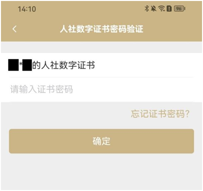 输入人社数字证书密码,点击【确定】,系统提示“申请成功”即完成申请。