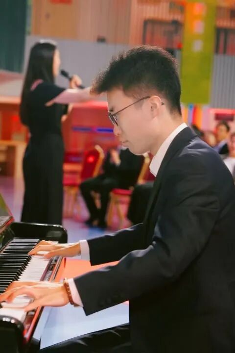 黎林妍老师和舒延老师合作演绎了开场歌曲《我和我的祖国》。黎老师的嗓音柔和高亢、舒老师的琴声行云流水,为现场注入了热烈而温暖的气息。歌曲最后,在场的老师们都不约而同地打起了节拍,将气氛推向了一个小小的高潮。