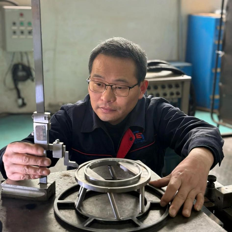 2013年,李勇调任钣金车间副主任,面对的却是人手短缺、成员多为应届生的“新手团队”。他深知“人才是根本”,便拎着工具亲自当起师傅,从认识工具、学习工艺开始,手把手教导新员工。教钣金加工时,他会细致讲解测量方法与下刀力度;组焊操作时,他不顾焊花烫手亲自示范;遇到精密工序,更是寸步不离地纠正偏差,直到徒弟完全掌握技能。如今,当年的新手们已纷纷蜕变为技术骨干:有人精通钣金工艺,有人成为组焊高手,更在团队中养成了敬业钻研的优良作风。