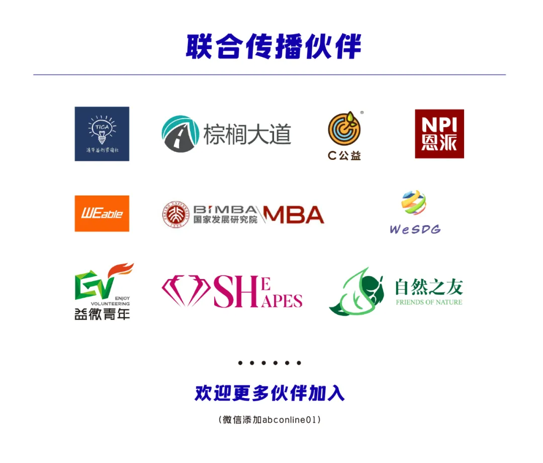 沙龙分享:以行业嘉宾的身份参与ABC公益沙龙等线下活动,按照需求参与行业交流。
