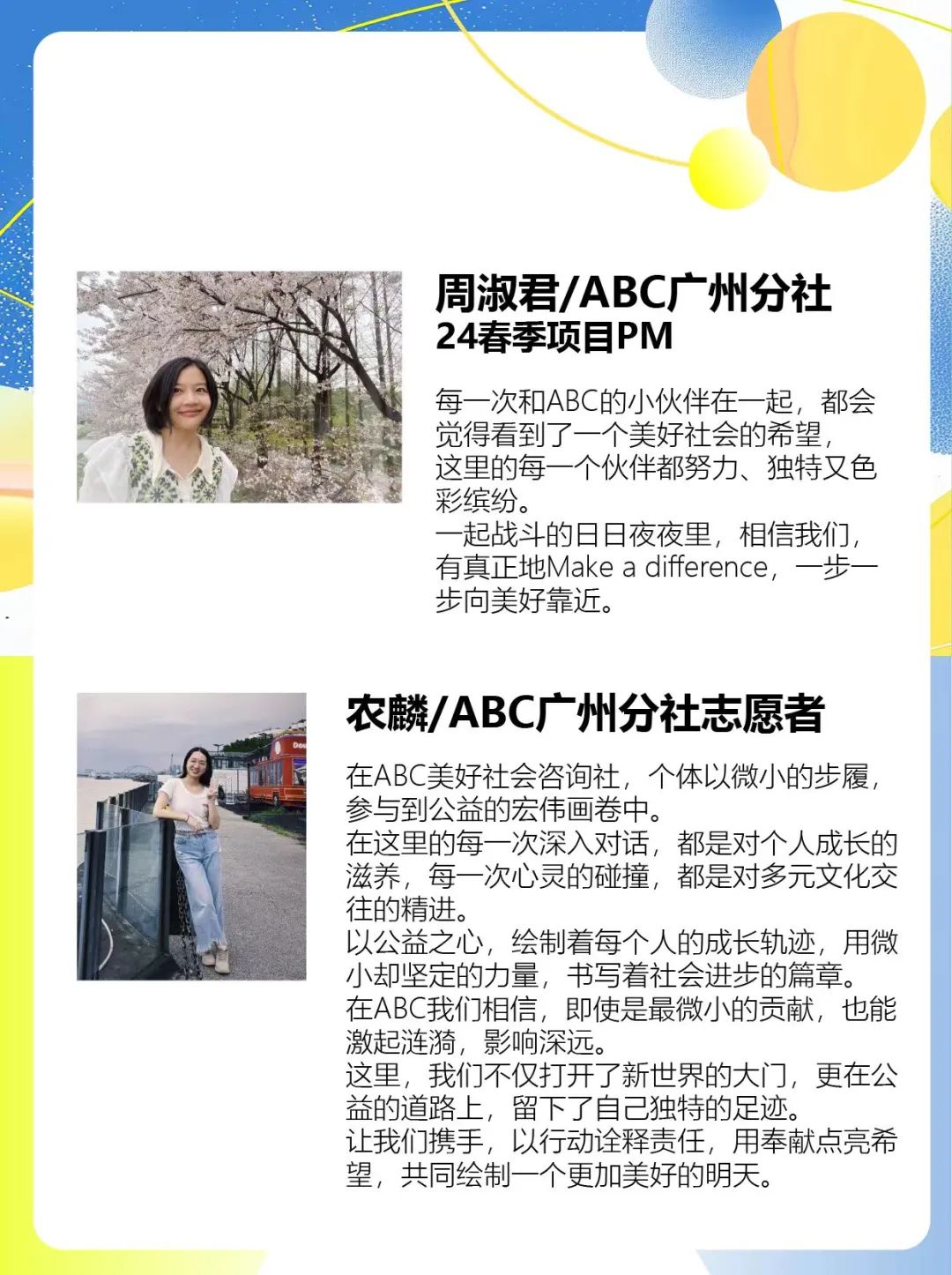 ABC相信,无论作为你的“公益第一步”,还是继续深耕打开更多参与公益项目的可能,都会在这个暖秋里收获成长与充盈。