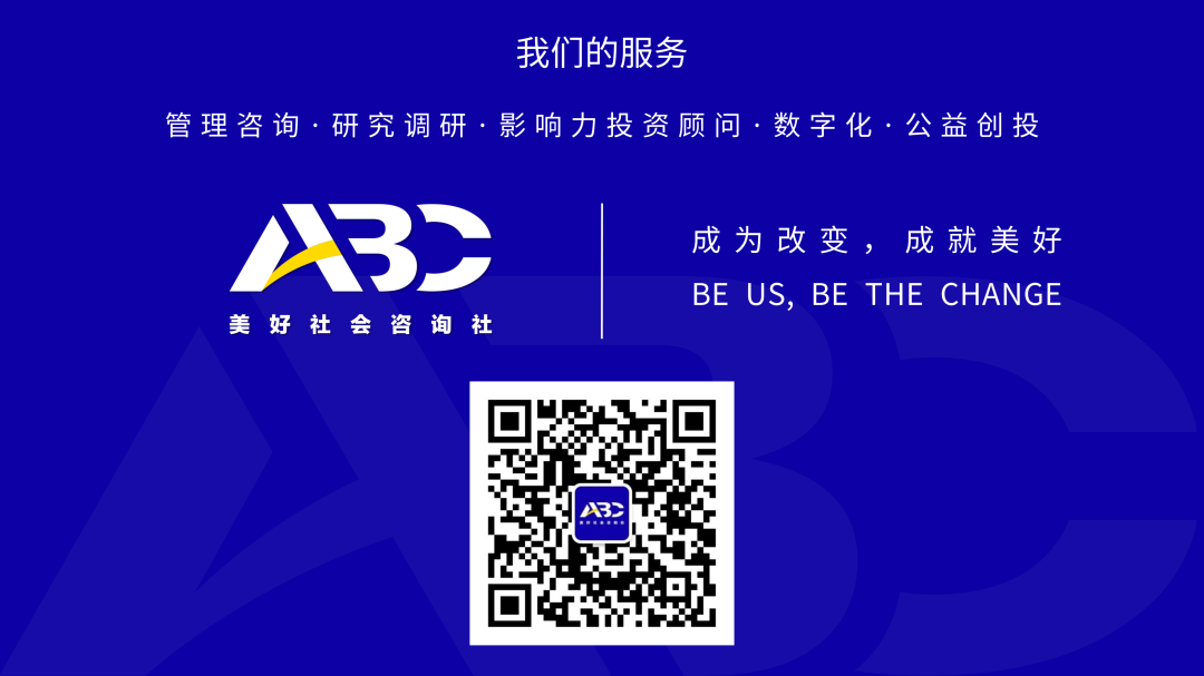 ABC以“公益咨询季”为载体,经过十五年发展,业务范畴已不局限于咨询领域,而是能触达到公益机构的全生命链条,从包括战略规划、品牌传播、项目设计与评估、人力资源、筹款、企业社会责任(CSR)、公益议题研究调研、影响力投资以及数字化公益方向,为公益机构解决不同发展阶段所遇到的问题。