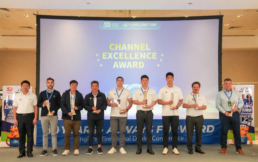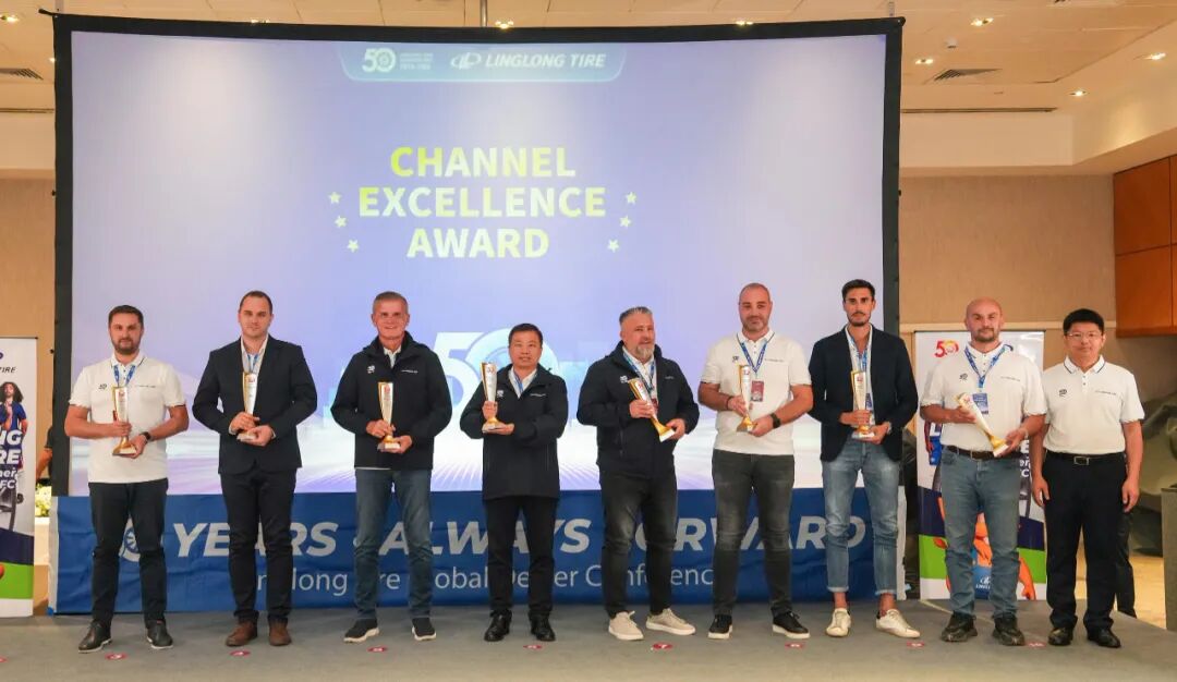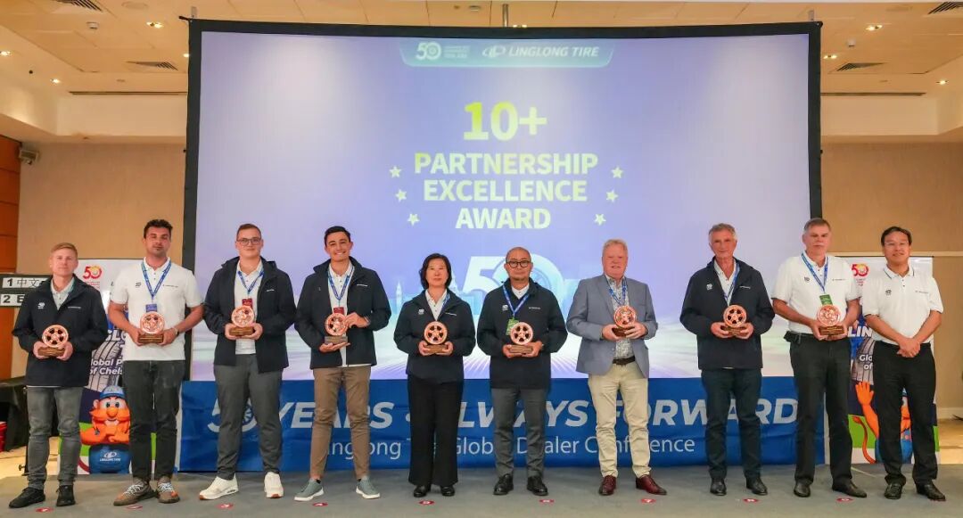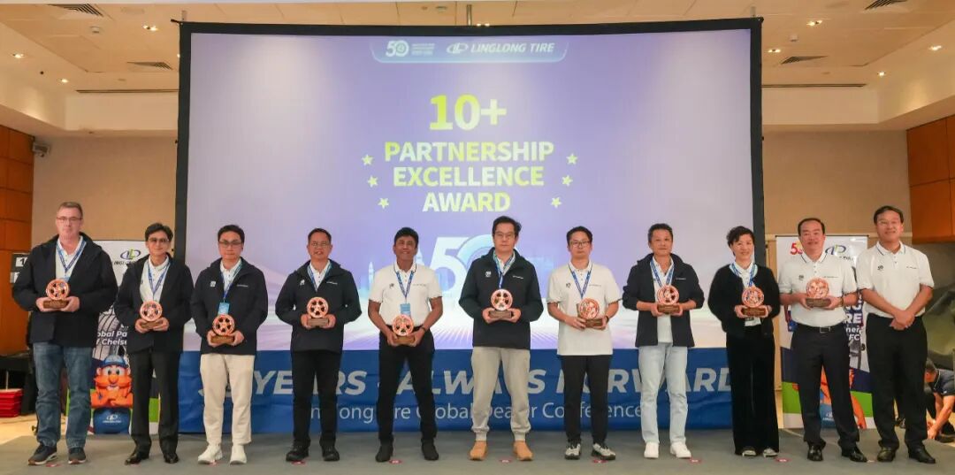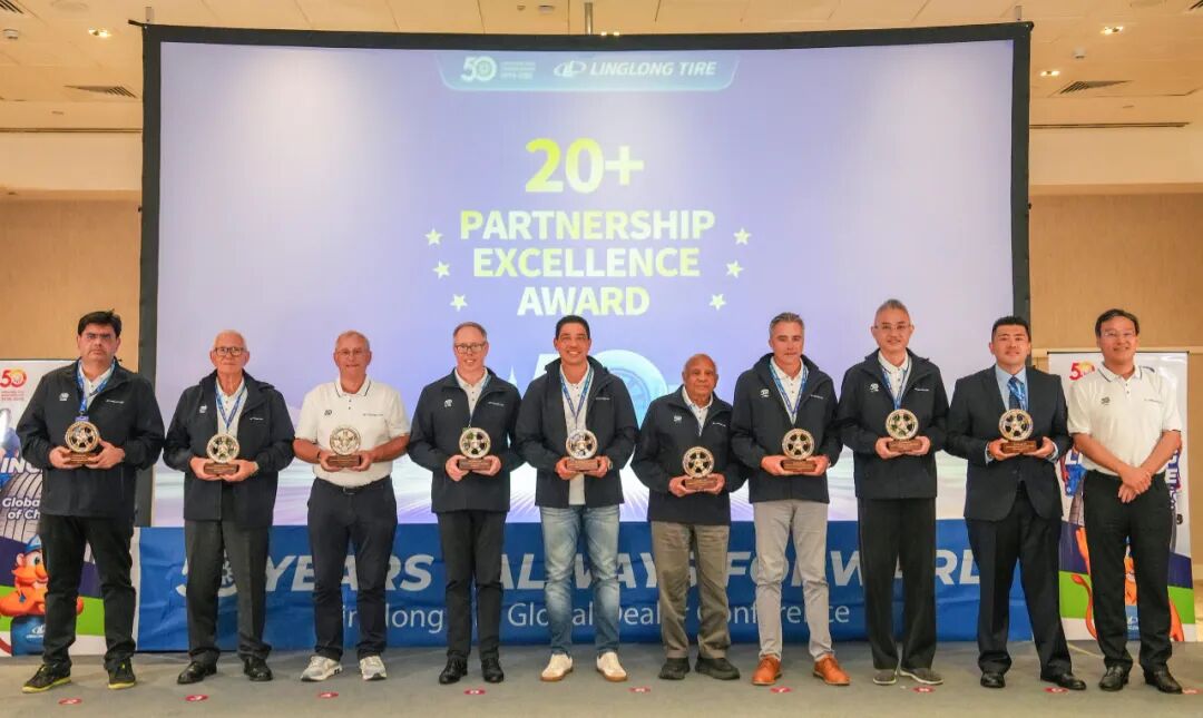 庆典期间,公司为来自全球渠道伙伴颁发“锐进伙伴奖”“渠道拓展奖”“臻品引领奖”“同心共赢奖”四大奖项,致敬那些与玲珑并肩作战、开拓市场的合作伙伴。王锋董事长表示:“中国有句古语:协力山成玉,同心土变金。玲珑轮胎一路走来离不开众多伙伴的鼎力相助,你们是玲珑最宝贵的财富。”