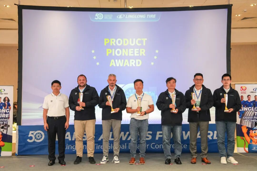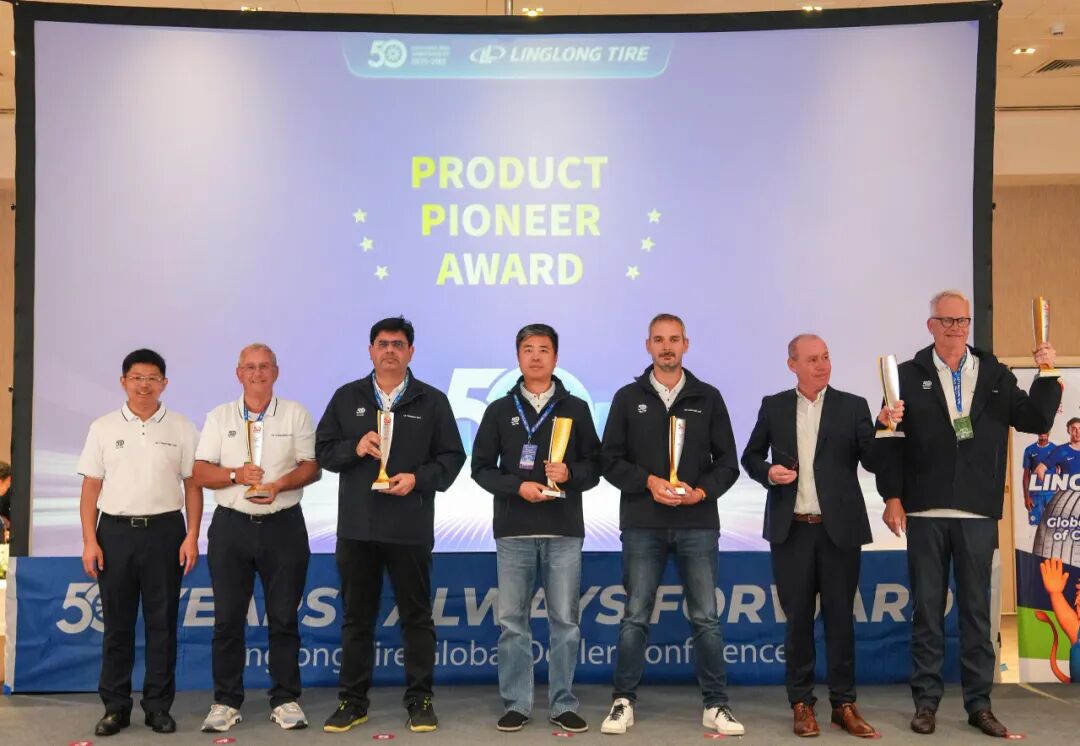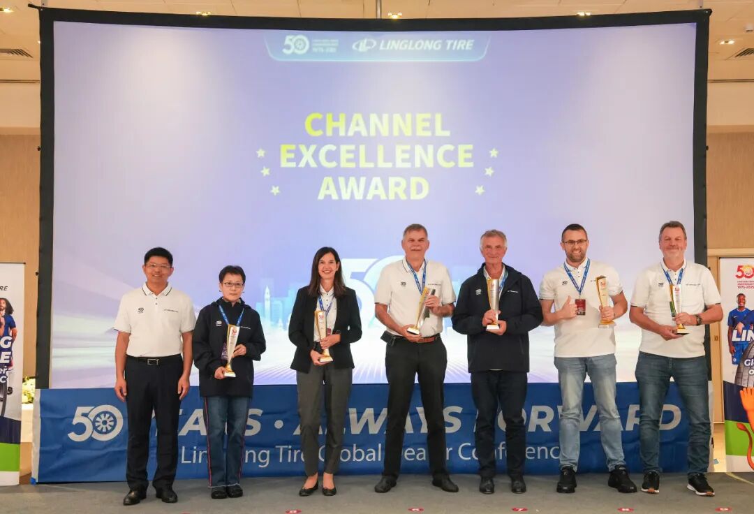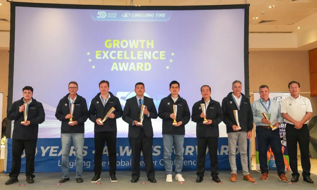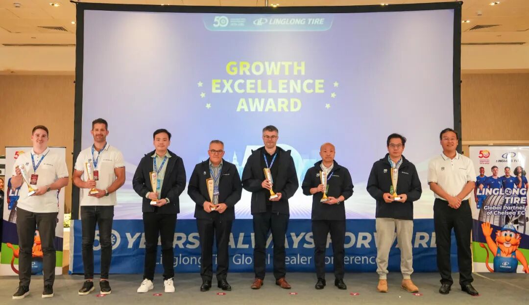 庆典期间,公司为来自全球渠道伙伴颁发“锐进伙伴奖”“渠道拓展奖”“臻品引领奖”“同心共赢奖”四大奖项,致敬那些与玲珑并肩作战、开拓市场的合作伙伴。王锋董事长表示:“中国有句古语:协力山成玉,同心土变金。玲珑轮胎一路走来离不开众多伙伴的鼎力相助,你们是玲珑最宝贵的财富。”