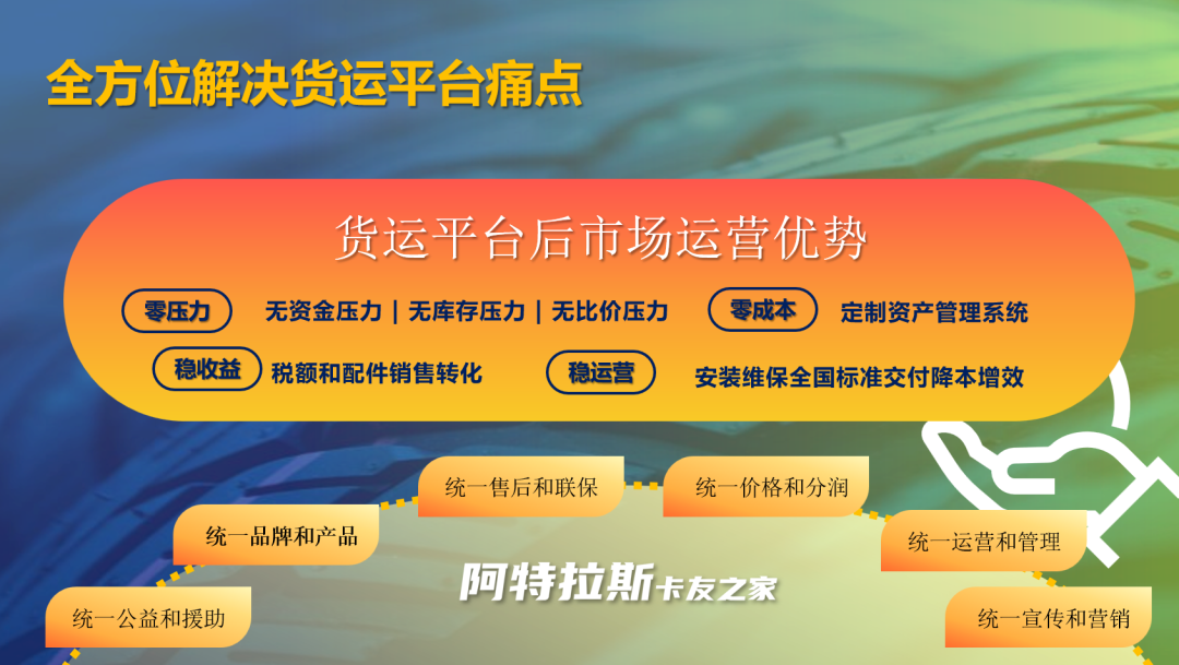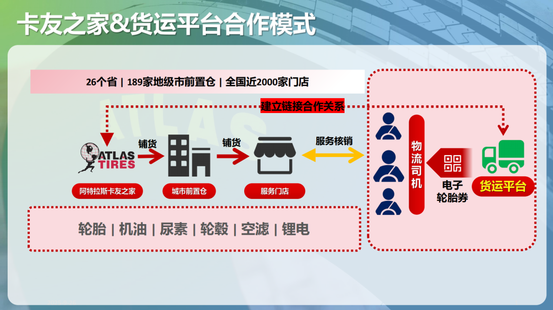 阿特拉斯卡友之家以“工厂—平台—渠道”三方协同的共赢模式,打通从生产到服务的全链路。通过全国统一售价,有效减少中间环节,稳定市场秩序;依托数字化系统实现轮胎资产管理与服务引流,确保产品可溯源、质量有保障、服务高效落地,全面赋能货运平台、车队与个体卡友。