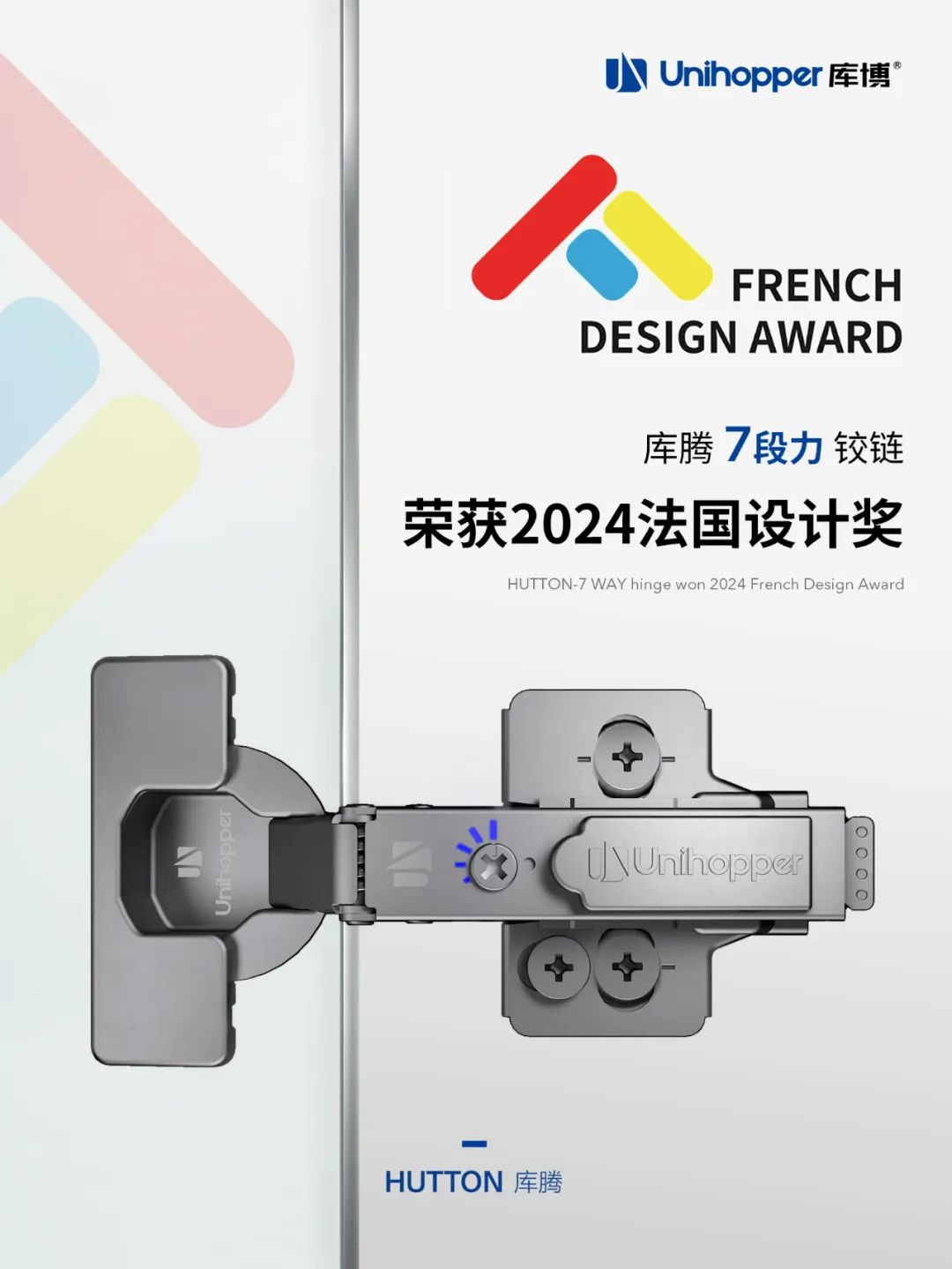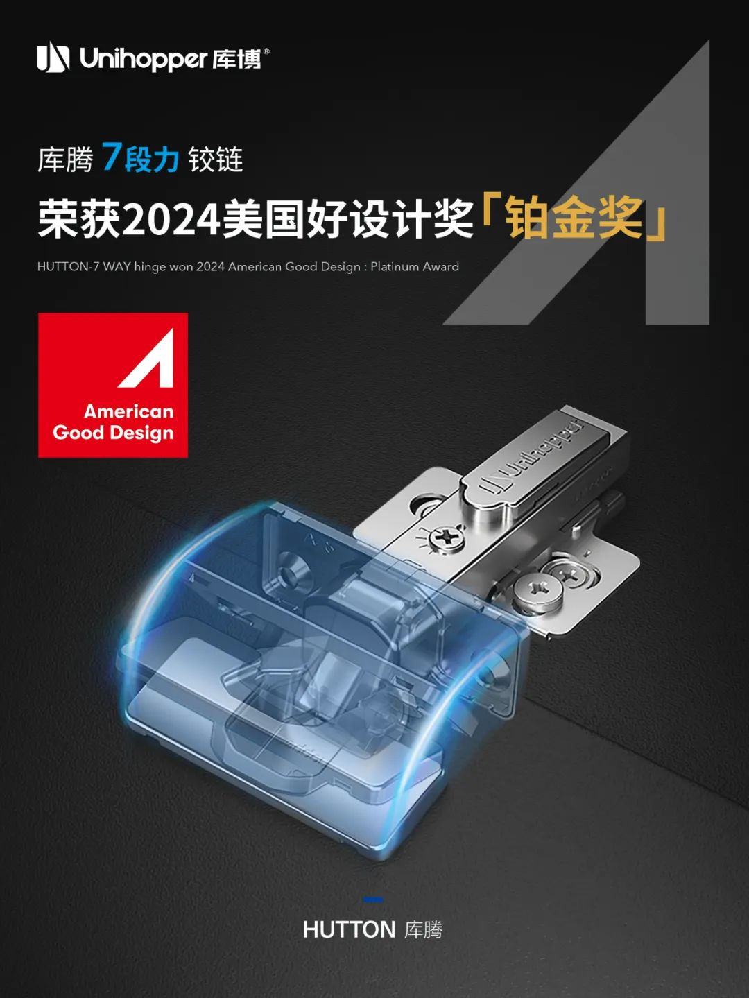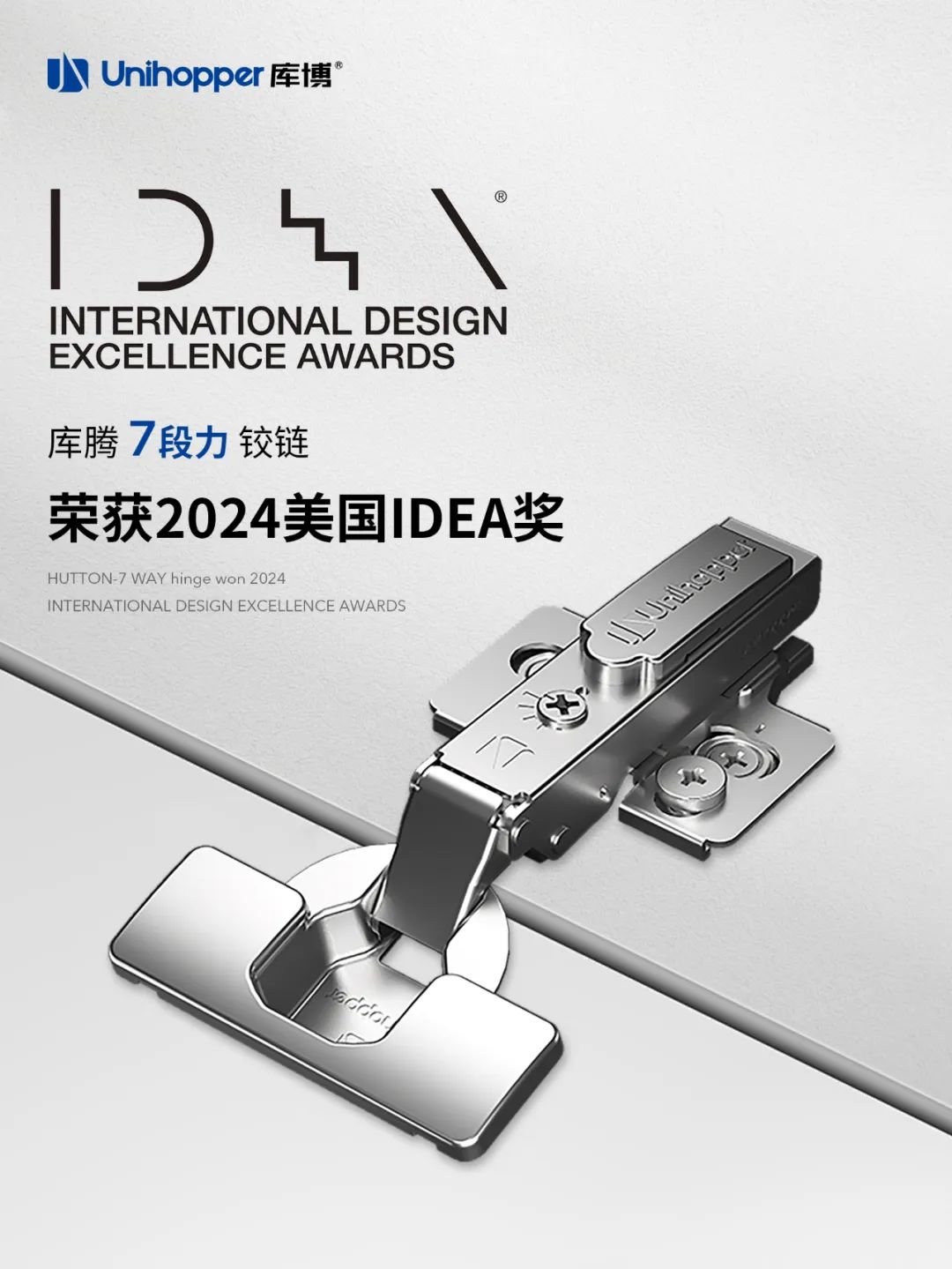 盛夏七月,喜讯频传。近日,Unihopper库博的重磅星品「库腾7段力铰链」,凭借极具国际前瞻性与开创性的原创设计和研发理念,从全球数万件参赛作品中脱颖而出,一举斩获2024美国IDEA奖、2024法国设计奖、2024美国好设计奖-铂金奖三大国际设计奖项,荣耀加身,载誉前行!