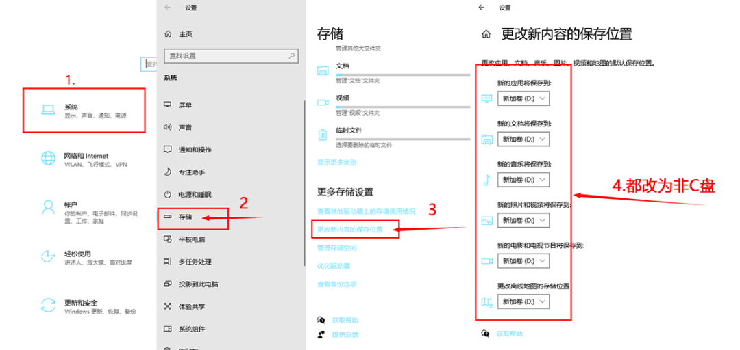 第三步:修改默认存储位置(从源头防爆满)