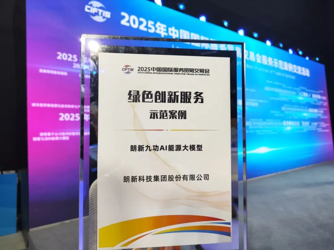 9月12日,在2025年中国国际服务贸易交易会(以下简称“服贸会”)服务示范案例交流活动上,朗新九功AI能源大模型凭借在AI融合能源和碳排放领域的创新性以及AI赋能绿色低碳发展的示范性成功入选“绿色创新服务示范案例”。