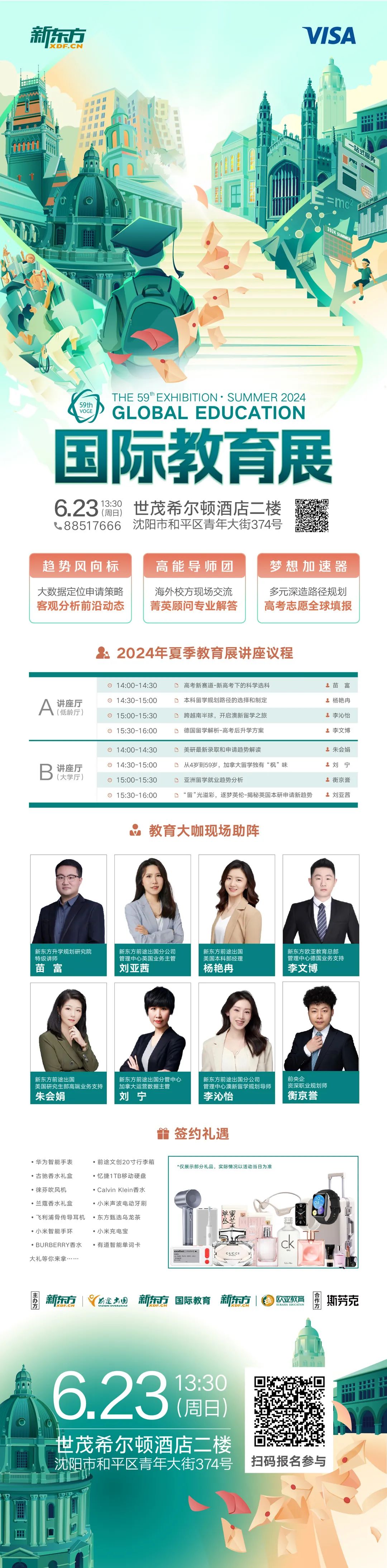 新高一选科/全球高考志愿填报/中外合作办学/留学咨询|第59届新东方国际教育展【沈阳站】即将开幕!
