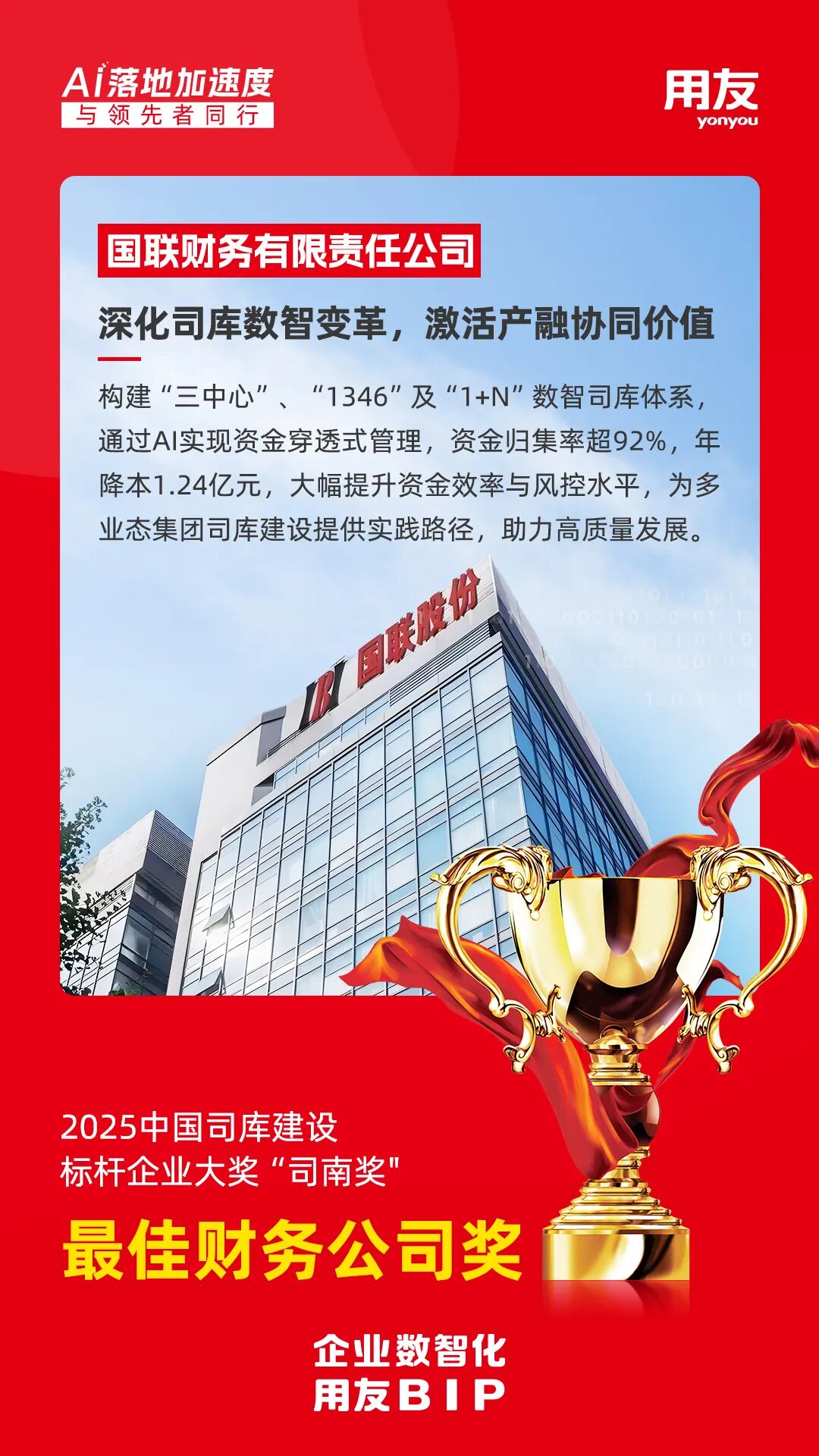 近期,在数智化转型领域的各类重磅奖项评选中,用友多家客户企业捷报频传!从IDC 未来企业大奖到中国企业财务管理最佳实践案例,再到中国司库年会 “司南奖”,用友助力客户企业在AI落地应用、多领域数智化转型升级、打造数智底座等方面取得阶段性成果,形成行业领先实践,获得权威机构认可。随着全新发布的用友BIP 5技术优势的持续释放,用友将助力更多企业规模落地企业AI,让AI真正赋能业务增长,助力企业在数智化变革中,跑出“加速度”。