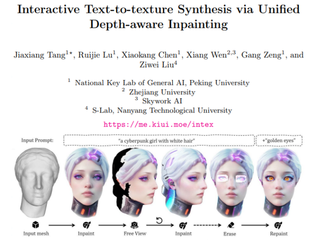 值得一提的是,在最新的Meta 3D Gen纹理生成研究中,引用了昆仑万维团队《InTeX: Interactive Text-to-texture Synthesis via Unified Depth-aware Inpainting》的研究内容。04.
