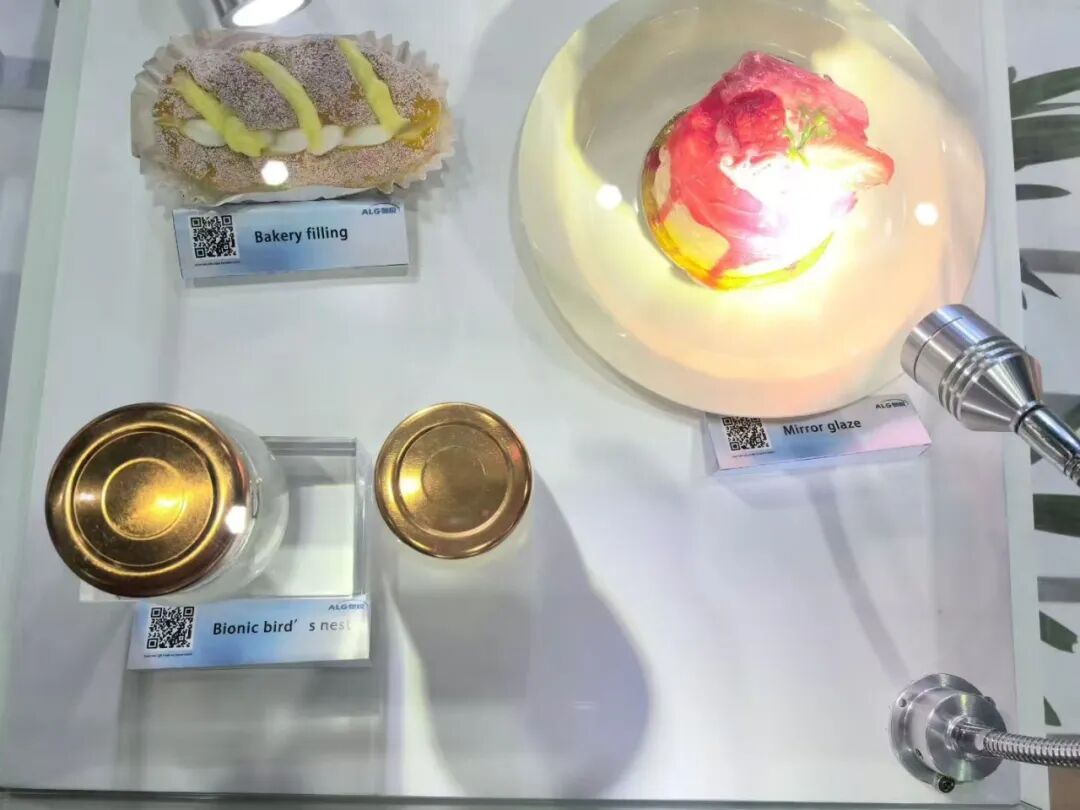 本次展会,海之林打造了一场兼具视觉与味觉的甜品创新盛宴。从Q弹爽滑的吸吸冻、璀璨剔透的镜面果胶,到增添惊喜口感的风味爆珠和原味晶球,再到应用广泛的软膜粉与代脂肪块,丰富的产品矩阵充分展示了我们赋能客户研发的实力。