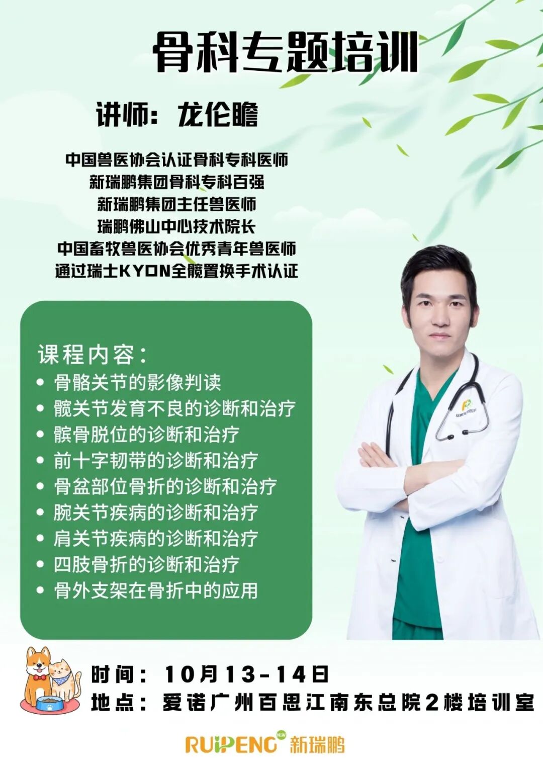 名师领航:本次课程,我们非常有幸邀请到了龙伦瞻医生。龙老师现任新瑞鹏宠物医疗集团华南区佛山技术负责人,同时也是瑞鹏佛山中心医院的技术院长兼主任兽医师。