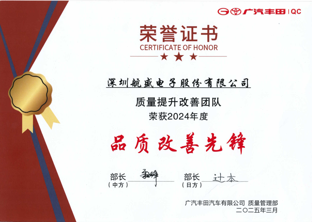 以匠心精神铸就卓越质效|航盛荣获广汽丰田 “品质改善先锋奖”