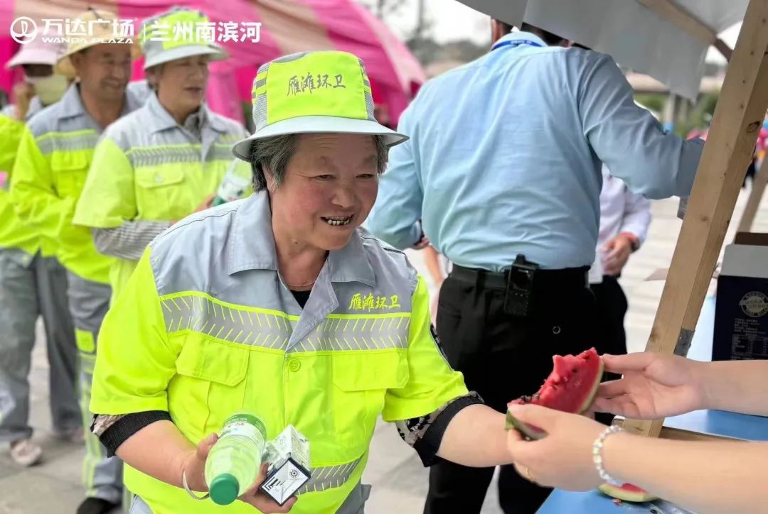 小暑前后,各地万达广场组团为户外工作者送清凉,推出“盛夏里,益起爱”“城市清凉公益计划”,万达志愿者们把一杯杯消暑饮品送到户外工作者们的手中。西瓜、雪糕、冰水、绿豆汤……为烈日下的劳动者带来清凉一刻。长春、哈尔滨等城市公司,为外卖骑手送上西瓜、柠檬水、雪糕;南方的万达广场联动可口可乐、康师傅、统一等品牌,为户外工作者送上小暑饮品;东区万达广场还走出广场,为消防官兵为“蓝朋友”送去夏日消暑慰问;在西区成都的万达广场,公益计划从“娃娃抓起”,孩子们将消暑饮品送到保安、外卖小哥手上。 ▼