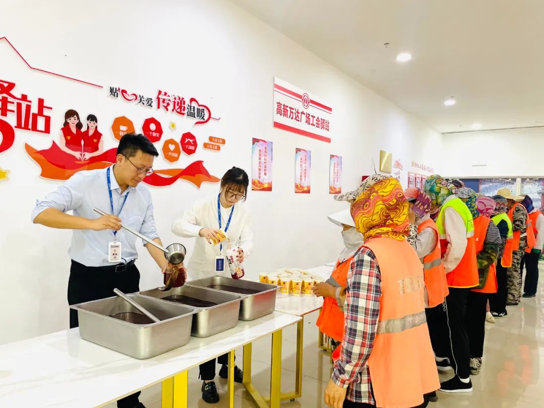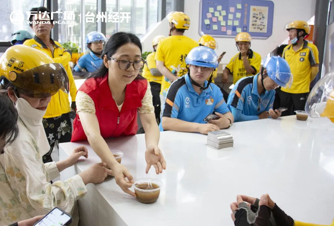 ▼ ▼还记得各地万达广场联合当地工会、社区落地的“爱心驿站”不?冬天,这里是避风港;夏天,这里化身清凉小屋。夏日工作者们可以随时来到清凉驿站,吹吹空调,歇脚纳凉,顺便充电补水,获得充分休息。大连高新、台州经开、南平建阳、新疆喀什等万达广场等依托爱心驿站,为户外劳动者搭建“清凉角”,为大家送上绿豆汤和冷饮等消暑饮品。