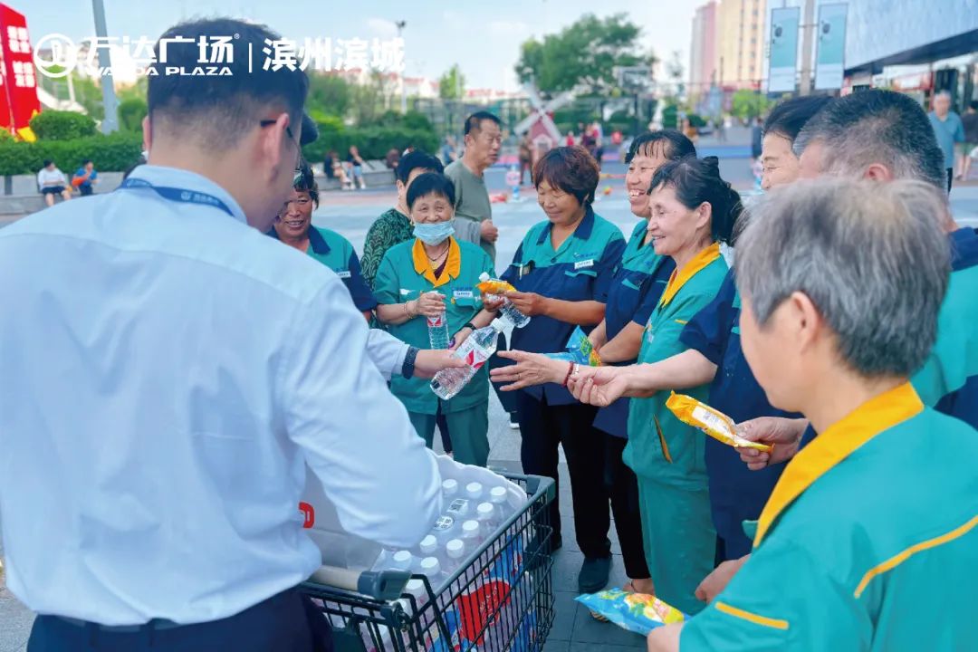 送走小暑,盛夏入伏,各地万达广场推出城市清凉计划,为环卫工人、快递外卖小哥、交警消防避暑纳凉。来源:万达集团(ID:guojiwanda)