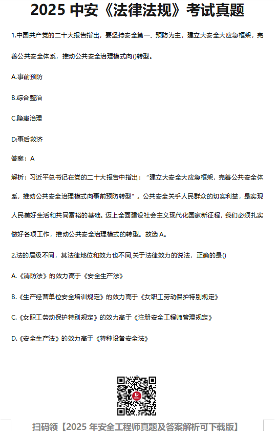 【完整版】25年注安法律法规真题答案!速进对答案估分!