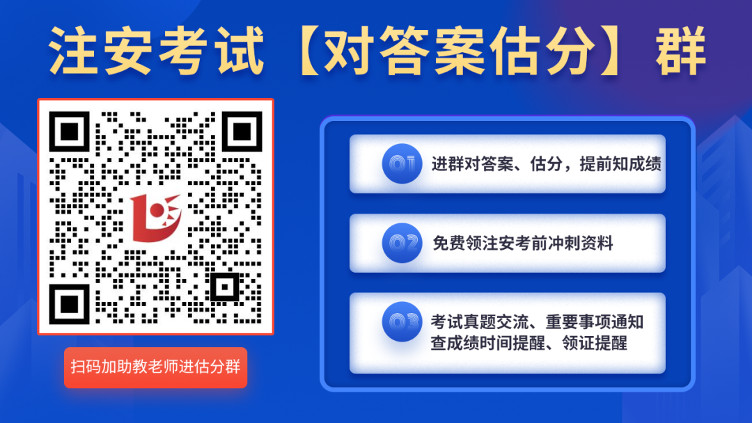 大家可扫描下方二维码添加微信,获取真题直播开播提醒、领取直播讲义、进注安考后估分群。