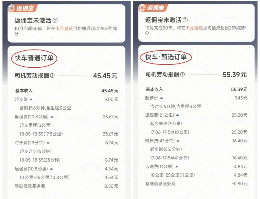 老司机算账:假设普通快车每单赚20元,甄选单就能多赚2元,一天接20单多赚40元!