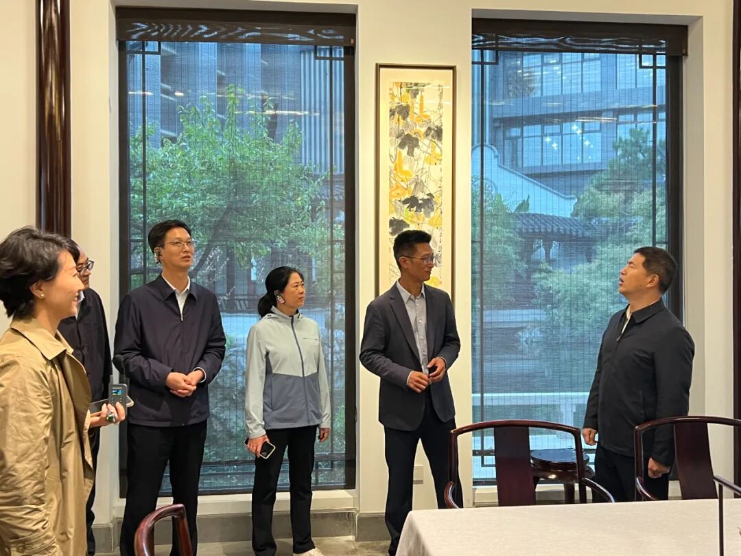 最后,调研组漫步鼎龙苏式园林,感受企业为职工营造的人文关怀氛围。园林内亭台楼阁错落有致,假山流水相映成趣,木质步道旁悬挂着“职工摄影作品展”,定格了职工工作生活的温馨瞬间。“这片园林不仅是职工休闲放松的好去处,也是工会开展‘心灵驿站’活动的阵地”,工作人员介绍,工会定期邀请心理咨询师在此举办“疗愈沙龙”,针对研发、生产一线职工开展压力疏导;每逢传统节日,还会在这里举办猜灯谜、包粽子、包饺子等民俗活动,让职工在传统文化氛围中感受“家”的温暖。在随后的交流中,调研组听取了鼎龙股份工会工作汇报,围绕职工权益保障、技能提升、文化建设等议题深入探讨。胡甲文副主席对鼎龙工会工作给予高度评价,胡甲文指出,企业工会要持续加强职工服务阵地建设,将其作为凝聚人心、汇聚力量的重要平台,组织开展形式多样、内容丰富的文体活动和技能提升培训,营造积极向上、团结奋进的企业文化,激发职工的劳动热情和创造活力,助力企业高质量发展。鼎龙股份工会主席师爽表示,将以此次调研为动力,持续加强工会自身建设,不断完善职工服务体系,让工会工作更有温度、更接地气,为企业高质量发展凝聚更强合力。