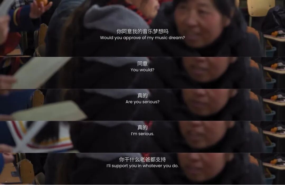 在镜头里,他曾兴奋地对父亲说,敲起非洲鼓时是自己最畅快的时刻。可父亲却只是摇头,说:“不学音乐,回去好好读书。”