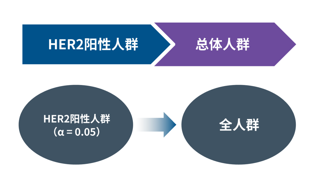 本研究首先在HER2阳性人群中进行假设检验,如果拒绝原假设,则把 α 传递给全人群,在全人群中做假设检验。