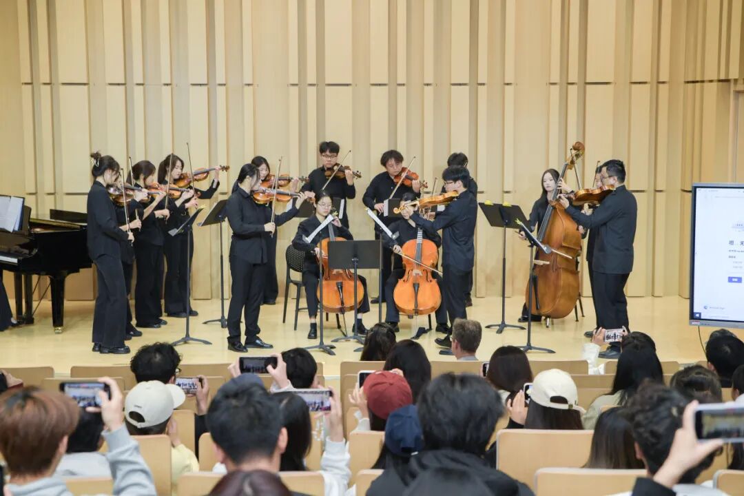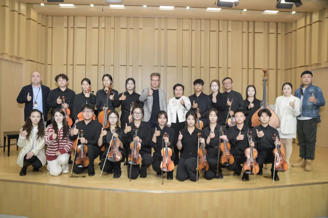 10月24日下午,卢克·多尔曼教授为艺术学院学生亲授大师课。课堂上,卢克·多尔曼教授以实践教学为主,结合自身演奏经验,针对学生基础问题逐一示范讲解。针对大提琴手持琴姿势僵硬的问题,他俯身调整琴身角度,强调“琴身需贴紧身体,通过肩颈自然支撑,让琴箱与演奏者呼吸同频”;对小提琴初学者运弓不稳的情况,他执琴示范“弓速与压力需均衡,弓毛轻贴弦面,声音才会干净通透”。课程持续2小时,学生们跟随卢克·多尔曼教授从基础姿势到细节处理逐步打磨技艺。课后,台上学生坦言:“以前只知道练琴,今天才明白‘听琴’同样关键——老师教我们感受琴箱的震动,调整手法让声音更‘活’。”