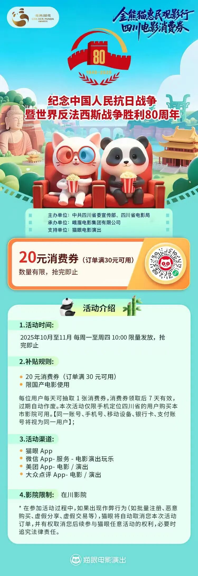 四川省电影消费券活动来啦