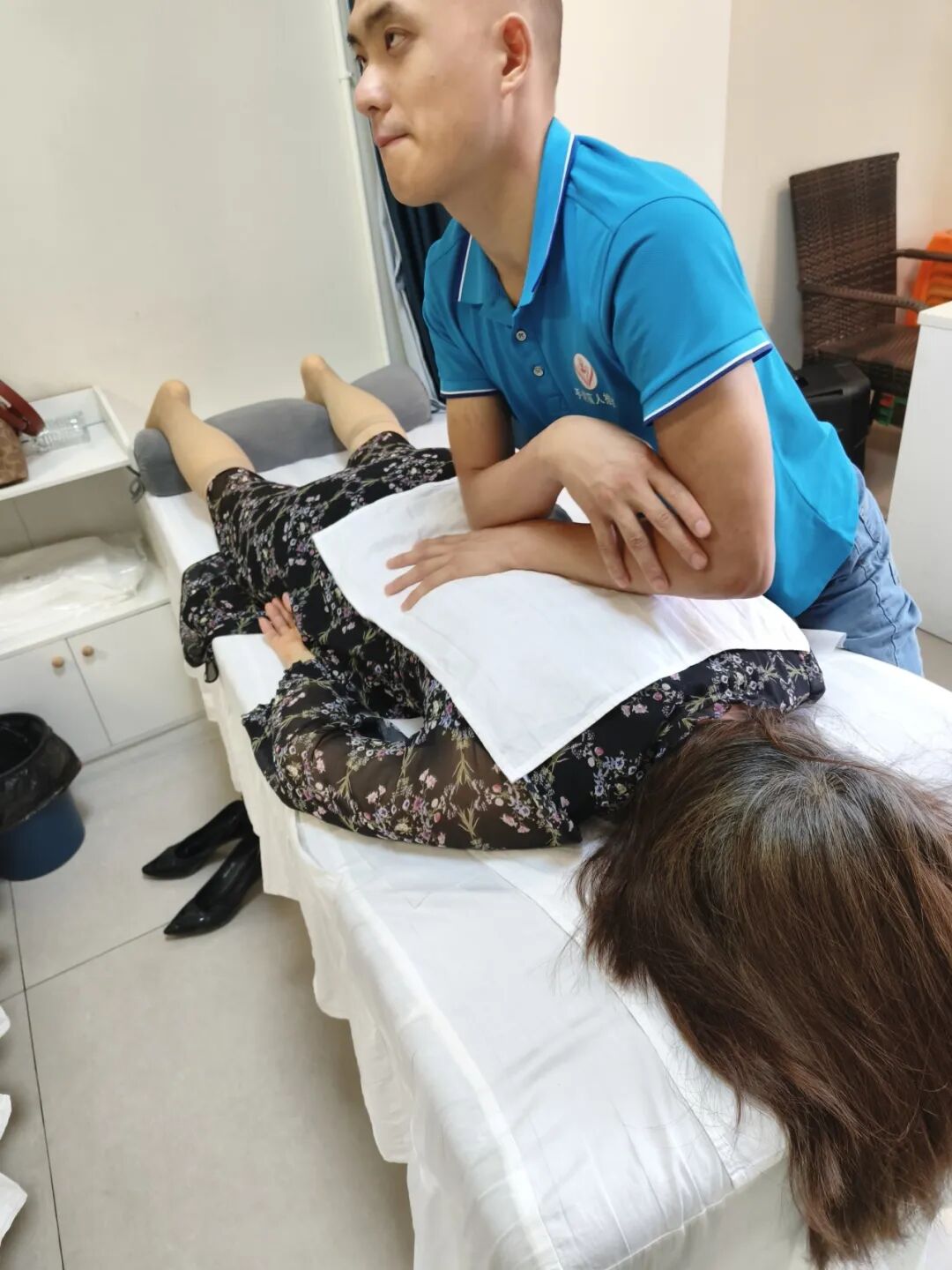初学时,他面临着巨大的挑战:手部力量不足、专业术语难以理解……但明超没有放弃,他每天坚持练习手部动作八九个小时,甚至拿筷子时手都在颤抖。印象最深的一次,他连续按压了一整个下午,未曾停歇哪怕一分钟。回想起那段经历,连他自己都觉得颇为不可思议,不知当时是如何咬牙坚持下来的。正是这份坚持与努力,让他逐渐掌握了推拿按摩的技巧,也为他日后的职业生涯打下了坚实的基础。