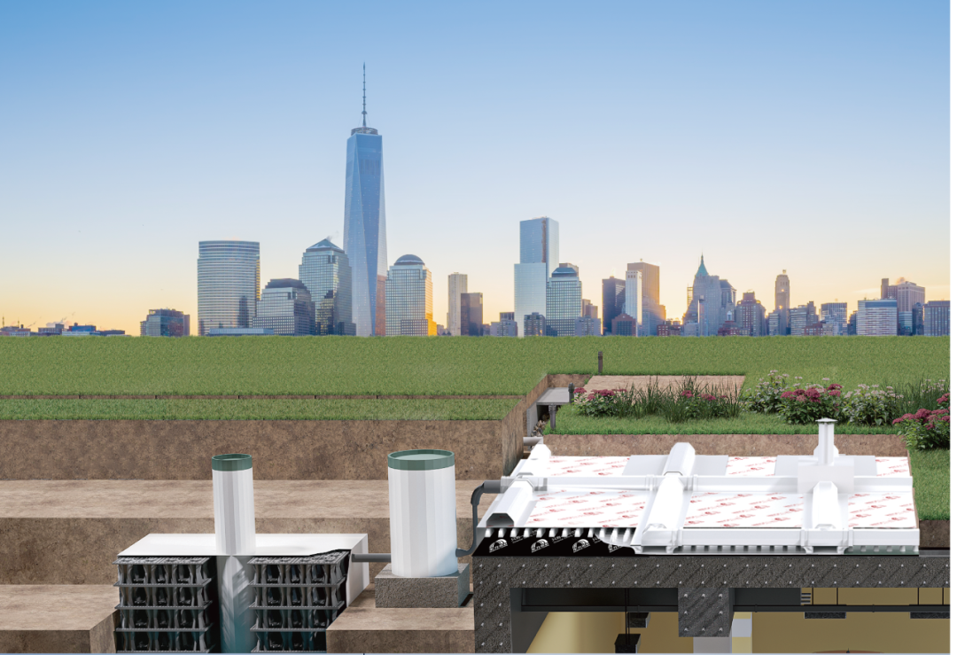 东方雨虹种植顶板用高分子防排蓄水集成系统的研发与应用彻底解决了传统地下建(构)筑物顶板排水层搭配盲沟盲管方法所导致的顶板过厚、排水效率低、底板滞水、地表积水、可能造成植物根系腐烂及雨水滞留从而导致的地库渗漏等问题,促使经济效益、生态效益与社会效益和谐统一。该系统全部组件为东方雨虹自主研发创新成果,集“渗、滞、蓄、净、用、排”为一体,兼顾防水、防洪、生态、景观等功能。其中,可伸缩排水槽、软连接管等排水组件,不仅能够有效解决结构转角、高低跨区排水连接等问题,更能够促进管道连接便捷施工,实现雨水顺利收集排放;核心组件高分子材料,具有突出的耐老化、耐腐蚀、高弹性等性能优势,能够从容应对恶劣环境,为建筑物的安全与美观提供坚实保障。此外,集成化的系统设计在提高施工效率方面成效显著,不仅施工便捷,能够有效缩短工程项目周期,更能够以此节省成本,真正实现降本提效。