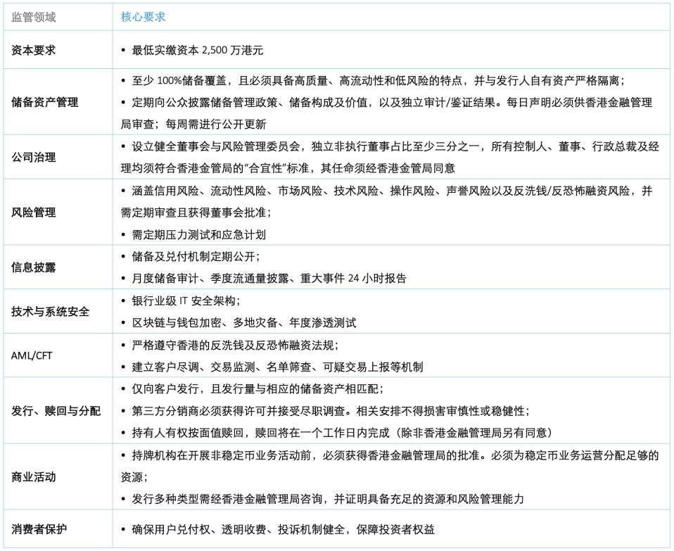 香港《稳定币条例》对稳定币发行人设立了多重门槛,涵盖资本、风险管理、治理等多方面。
