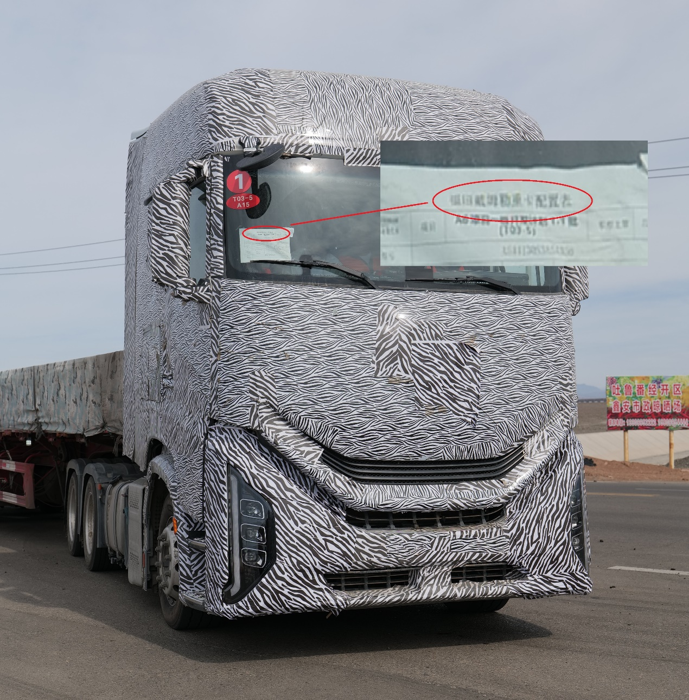 近期,网上曝光了一组新疆吐鲁番全身伪装重卡的路试照片。经过第一商用车网分析,发现这可能是一款全新造型的欧曼重卡,在进行高温测试。从曝光的照片可见,这款牵引车的外观与“欧曼家族”的重卡有很大区别。它有着竖直的驾驶室A柱,并且前脸、车灯都进行了重新设计。该车前脸取消了外置的遮阳板,并采用了前面罩的设计。前面罩的上半部分采用了全包围设计,使得整车前脸不仅更为饱满,同时也可以进一步降低车辆风阻。车灯方面,该车竖列的车灯矩阵代替了传统重卡车灯造型,极具辨识度。由此,第一商用车网推测,这应该是一款欧曼全新平台、全新造型的重卡产品。