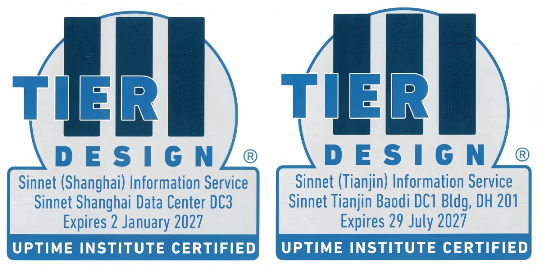 数据中心综合能力再获权威认证!光环新网天津宝坻&上海嘉定数据中心通过Uptime T3认证
