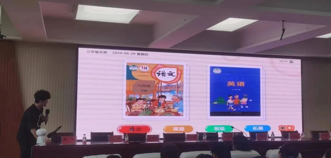 之后,北京执象科技发展有限公司青海分公司运营经理朱恩鑫为在场的教师和学生们演示了大象AI助教机器人的各项功能,并培训了这些功能的基本操作流程,使得教师和学生对大象AI助教机器人有了更加充分的认识。相信今后,大象AI助教机器人一定会成为教师教学的好帮手,学生学习的好伙伴。