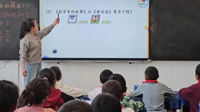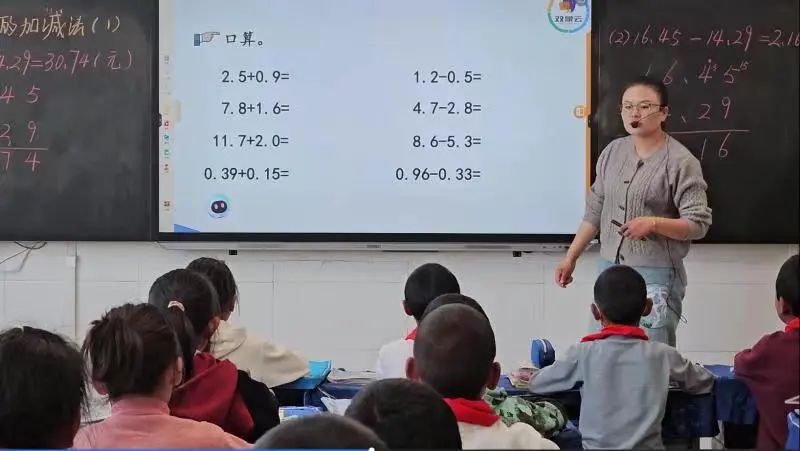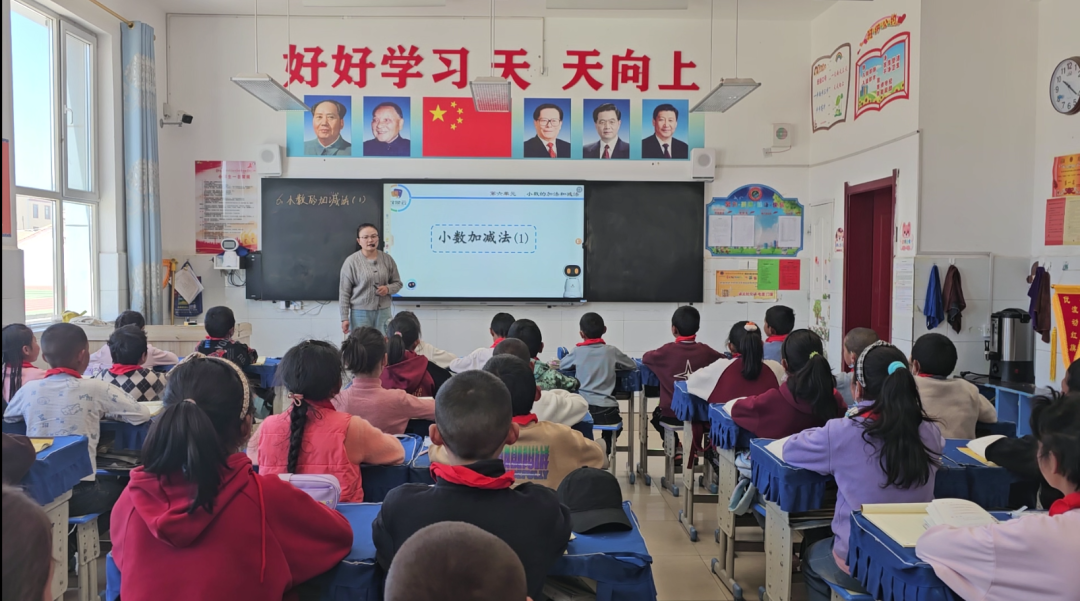 本次活动的数学公开课,由四年级四班吉毛加老师讲解《小数加减法》。老师利用AI助教机器人提供的课件,为同学们展示小数点的概念,并通过动态演示,帮助学生更直观地理解知识点,清晰地传达概念和指导,确保学生理解课程目标和期望。课堂上,吉毛加老师熟练应用大象AI助教机器人,充分利用现代信息化设备与传统的授课模式相结合,帮助学生理解课堂数学知识。在老师与AI助教机器人“双师课堂”的驱动下,同学们的学习热情被激发,课堂气氛十分活跃。老师利用AI助教机器人口算功能,学生们积极地进行口算练习。老师利用大象机器人的真题练习,对本节所讲的内容进行了巩固和复习。英语公开课,由李若晴老师为四年级四班讲解,课题为《Unit 4 PartB Let’s talk》。李老师根据学生在课堂上的反应和理解程度,调整教学计划和节奏,通过有趣的讲解、与机器人互动活动吸引学生的注意力,使课堂生动有趣,共同打造了一堂精彩丰富的英语公开课。课堂上,老师鼓励同学们大胆参与AI 助教机器人互动,在课堂上参与英语口语评测。 同学们积极响应,大胆走上讲台,分别扮演课文中的不同角色,通过人机对话来体验AI 助教机器人趣配音,使整节英语课显得更加生动有趣。老师对学生配音的结果进行分析和重点单词发音做了纠正,通过AI助教机器人的语音识别功能,有的放矢,让学生在发音和语法上得到即时的指导。同学们在活跃的气氛中,感受人工智能助教设备带来的改变,这种全新的体验,让他们对英语课有了更加浓厚的兴趣。共和县倒淌河镇民族寄宿制小学是典型的民族地区寄宿制学校,本次活动引进人工智能设备深入教育全环节,在教育资源供给、人才培养统筹、国家通用语言文字推广、城乡教育一体化发展、铸牢中国民族共同体意识方面,均具有重要意义。