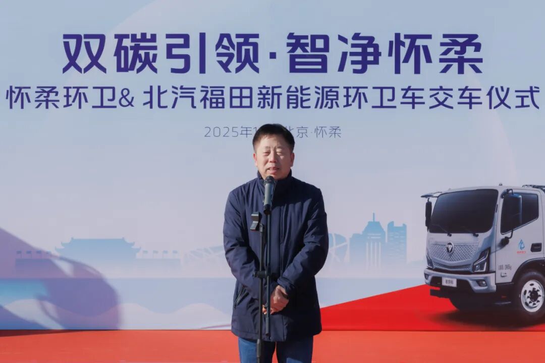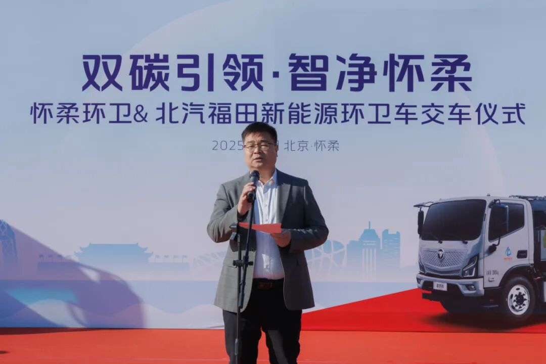 交车仪式上,北汽福田京津冀营销中心总经理刘海波在致辞中表示,作为服务京津冀市场的前沿阵地,营销中心始终致力于将福田最新的新能源产品与定制化的服务解决方案快速导入本地市场。福田普罗科品牌秉承技术领先、品质为本的理念,此次交付的车辆不仅在续航、载重及安全性上满足高标准作业要求,也充分体现了福田汽车响应“双碳”目标、助力区域绿色发展的坚定承诺。未来,福田将依托京津冀营销中心的本地化服务优势,持续为怀柔环卫提供高效、可靠的技术支持与保障。